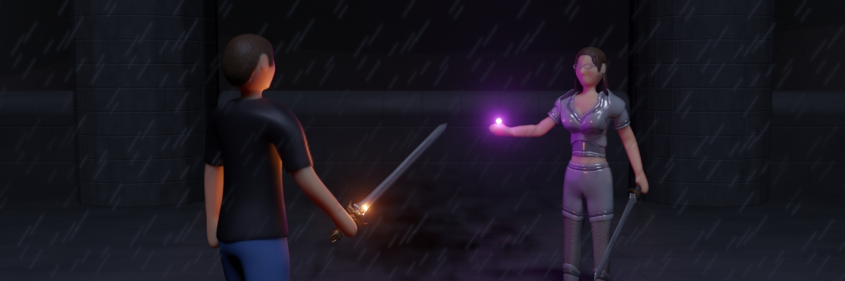The Rogue shook David’s hand and departed, returning to his own quest once again. Cleansing rain began to fall as the Knight leaned in and kissed David on the cheek. Then, hand in hand, they descended the tower together.
